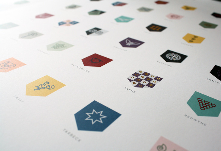 But unlike the rest of us, Crescenzi didn’t end his obsession there. He’s a branding expert, after all. Logo and typographical designs are what we eats, sleeps, and breathes. So while he devoured the books, he also kept a notebook at his side, recording the text descriptions whenever George R.R. Martin introduced a new house sigil. By the third book, Crescenzi stopped taking dictation and began drawing the sigils then and there, eventually compiling the whopping collection of sigils you see here. “I didn’t brand each house–George R.R. Martin did, and whether or not it was intentional, the result is an integral piece in the success the series,” Crescenzi says. “All I wanted to do was give them a sort of unexpected and unified visual language.
