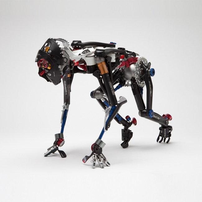 Here’s a box of 100 SRAM high-performance bike components. Now make something of it. That’s the challenge SRAM laid down for a group of noted artists from across the country, handpicked by Milwaukee’s art Guru Terrence Coffman and SRAM’s very own Marketing Chief David Zimberoff. The participating artists more than met this challenge.