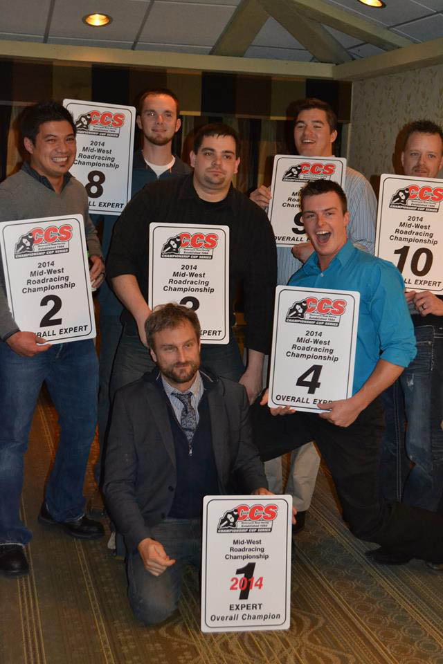 On the night of the awards ceremonies, we navigated our way through the catacombs of the Lake Lawn Resort to the banquet hall. We were greeted with many familiar faces, many of whose taste buds were still reeling from the flavor tripping experience they had at Design Engine’s party the night before. We grabbed a few Spotted Cow beers and some cocktails from the bar and found our seats. We listened as the CCS officials gave out the awards and congratulations to the riders, which was followed by speeches from the riders and award winners. There was plenty of heckling, yelling, laughing and typical racer cut-up behavior. Riders and officials, along with their loved ones and supporters, all enjoyed a fun-filled night as we looked forward to the 2015 CCS Racing season.
