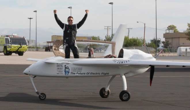 Chip Yates who made history last year for going over 200 MPH on an electric motorcycle has recently made history again by going over 200 MPH in an electric airplane. Over the past year much visibility has been given to the electric car, which is now generally available from a number of automobile manufacturers. Electric flight however is still at a fairly early and formative stage of development. All the issues that have slowed the adoption of electric cars, such range limitations and the weight and power density of battery packs have applied more acutely to electric planes where these engineering challenges have a more pronounced effect. Speed demon Chip himself has noted that breaking speed records has been an important step in garnering credibility for electric transport and these types of record breaking flights have the potential to do for electric planes what Tesla did for electric cars. Chip’s recent flight on July 19th took off from Inyokern Airport in the Mohave Desert in CA. Ironically the experimental plane was powered by the same pack of electric battery cells that powered his most recent electric motorcycle records over the past year. In the big picture going over 200 miles an hour in a single engine electric prop plane may not at first seem that significant, since it was not uncommon for single engine planes in World War 2 to exceed 400 miles per hour but this does represent an important step forward for electric aviation.