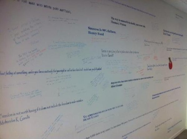 The failure wall was part of our efforts to create a company culture where employees can take risks without fear of reprisal. As NPR’s Here and Now reported earlier this year, we started by collecting inspirational quotes about failure. Among my favorites: