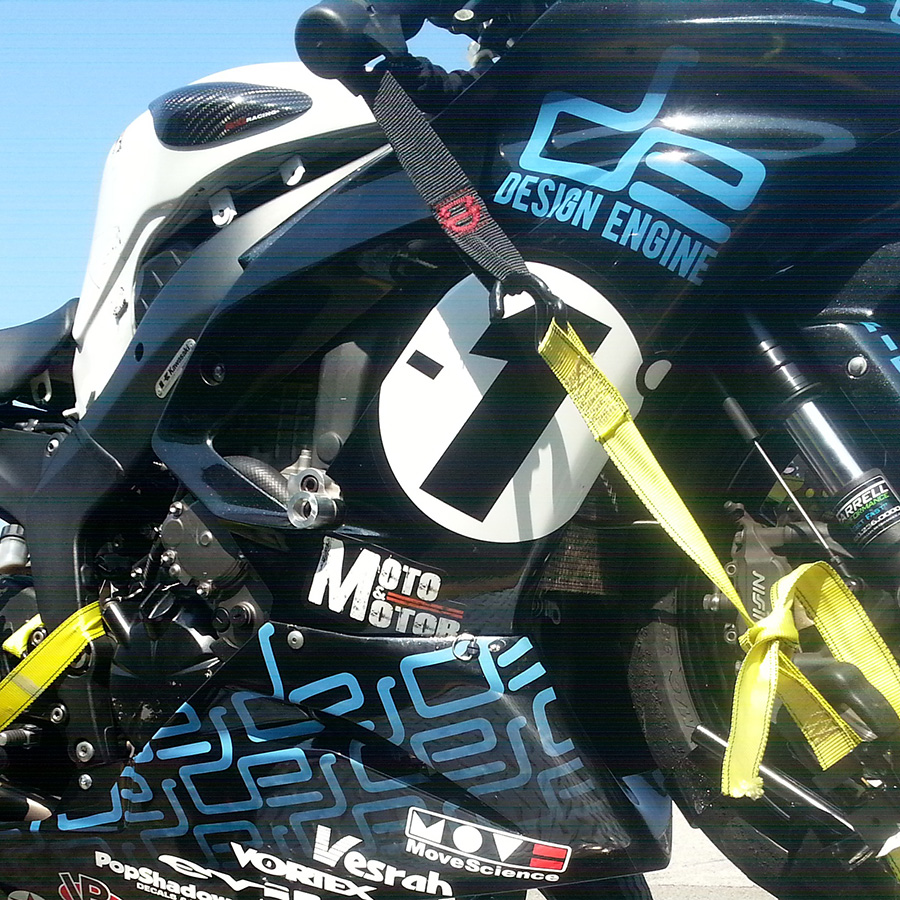 Always best to hit the road after that snail-like rush hour Chicago traffic. Racers like to go fast…even if it’s on the way to the track. Bart’s first destination was Oshkosh, WI to see Jason Farrell. Brian picked up the fairings from Tea Palella, who was challenged with designing something new graphically for the Design Engine Racing Team. They had designed the graphics in the past but wanted a new look (Design Engine has been so busy lately) so we enlisted Tea Palella’s company Pop Shadow, to come up with something giving her creative liberty AND only a 4-day deadline. Thanks to Tea and Pop Shadow for delivering an awesome new look in time for the race weekend.