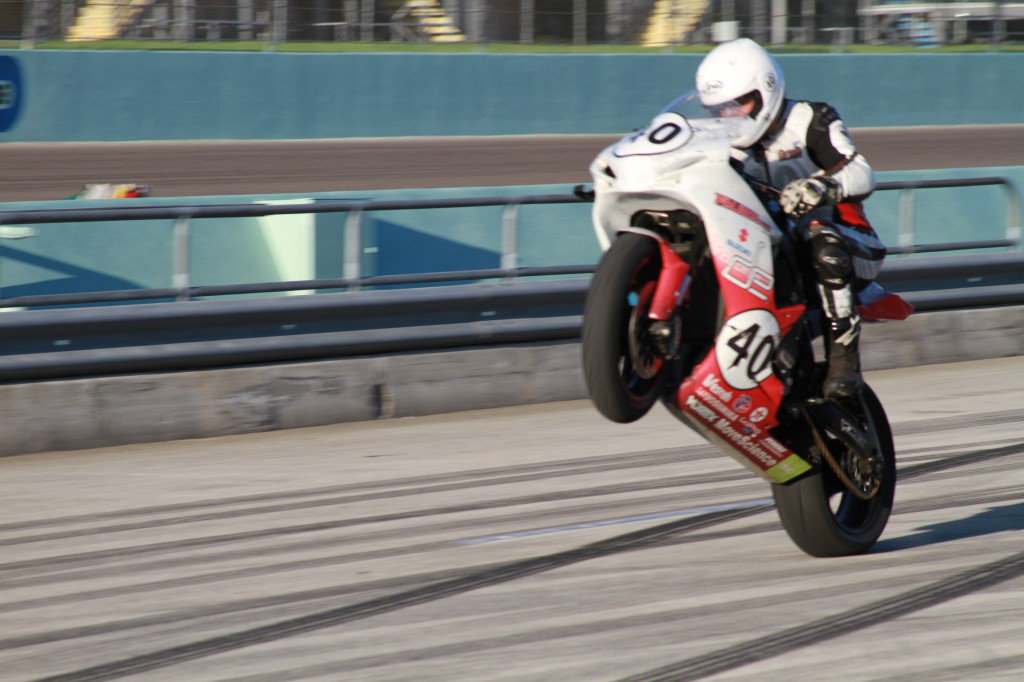 Having taken in all of the beauty that Art Basel and the Wynwood had to offer, we awoke the next morning with our ultimate goal in mind: Homestead’s CCS races. We made our way to the track, and set up shop in one of the last remaining garage spaces. Saturday was practice. Our race team had to get on track quickly to determine the gearing. What sprockets to use is important to fast lap times. We were all impressed by the hospitality of our neighbors in the paddock. Motorcycle racing is more than just a hobby for those who participate on and off the track; it is a way of life. The word family is used a great deal. It is not just about winning, it’s about