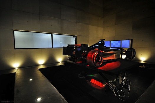 The F1 area’s got six Cruden simulators, which look rather similar to Toyota’s 2008 TF108. They have a fiberglass and carbon composite monocoque chassis, quick-release steering wheel, Nomex F1 seat and six-point harness.