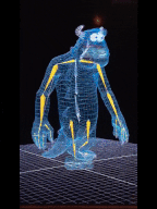The model starts as a wireframe of a 3D shape. The goal for the digital artist is to create an organic and believable looking model. Some of these characters have very detailed and complex curves and surfaces. To have more control and more detail when modeling , subdivision takes place. The more points there are on a shape, the more control and manipulation is possible. Through Maya, a subdivision surface allows specific regions of a mesh to be subdivided, giving the ability to finely tune or smooth certain areas without changing the entire mesh. The mesh is most dense at the most complex features, such as on a characters face.