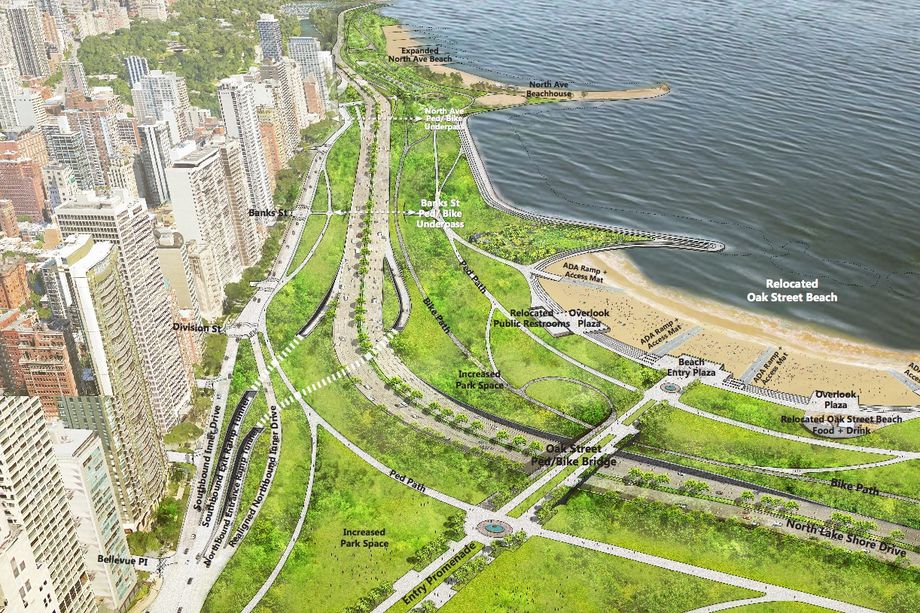 A fresh set of renderings for the transformation of Chicago’s Lake Shore Drive have been revealed. The new plan calls for a 70-acre park extending out into Lake Michigan as well as upgrades to the beaches at Oak Street and Ohio Street.